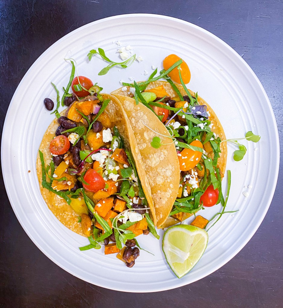 I pulled out a household favorite for cinco de Mayo today – our quick and easy black bean tacos! Perfect for weeknights and packed with flavor, this one will be a sure winner at the table. Done in under 30 minutes this recipe is gluten free, vegetarian and vegan adaptable!