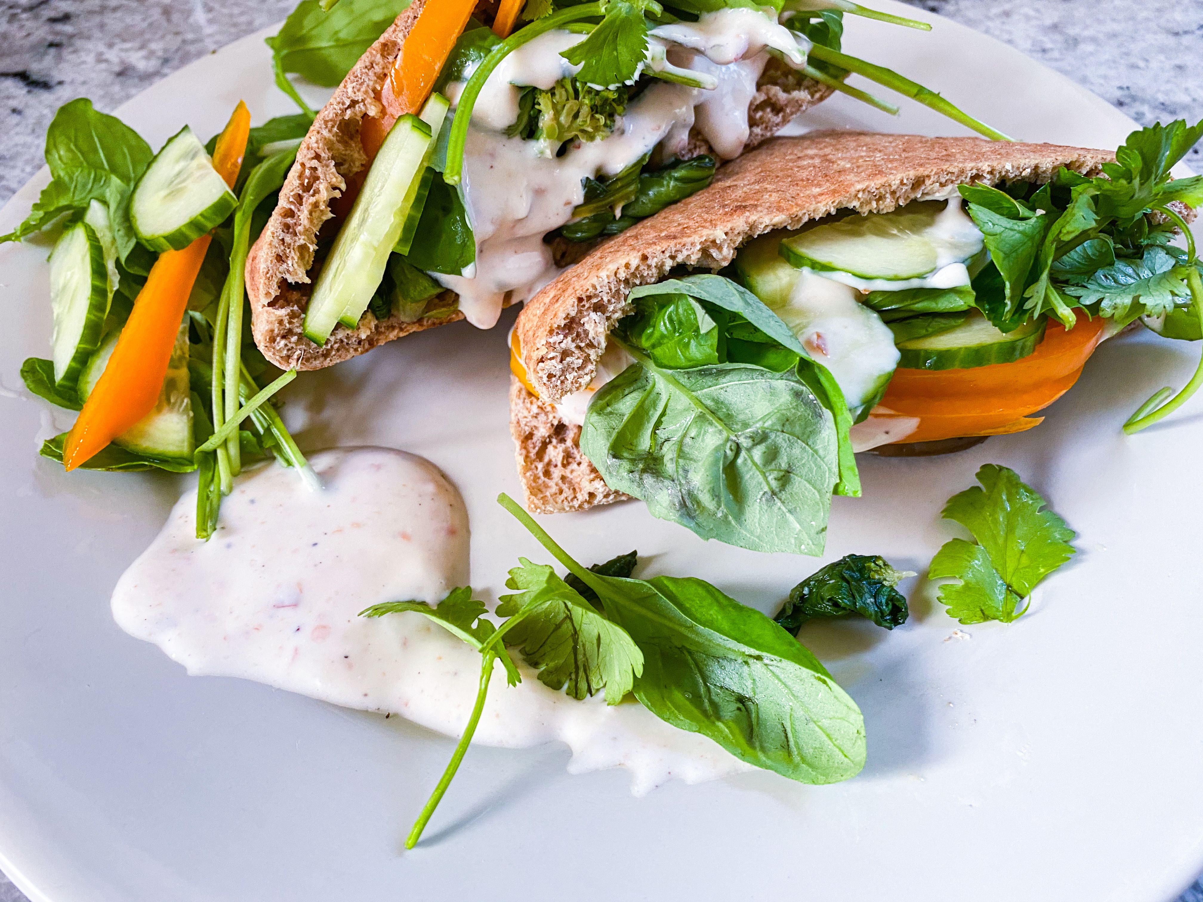 This recipe came together when I was craving pitas, but had a lot of ingredients that pair well with Asian flavors. And the result was incredibly delicious! The yogurt sauce is so addictive, my family drizzles extra on every bite. This one is quick for weeknights, extra healthy, and vegetarian/kid-friendly.