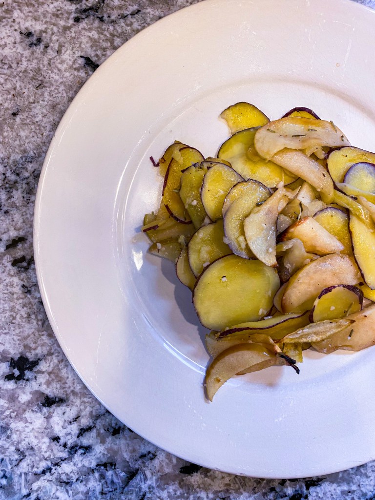 - 1.5 pounds red potatoes (about 6-8 medium), sliced thin