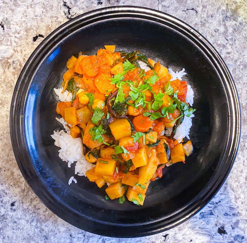 Our lives have been a bit crazy lately because….. we bought a new house! Since we are also trying to sell our current home, I haven’t been able to cook as much as I would like. I was finally able to fully use my kitchen and decided to make my quick vegetable curry. This is a riff on a wonderful red curry recipe by Minimalist Baker that is simple, yet delicious. Perfect for fall weeknights, this version uses root vegetables and squash to create a hearty dish with leftovers to spare. It’s hard not to love!